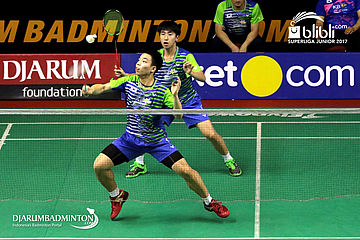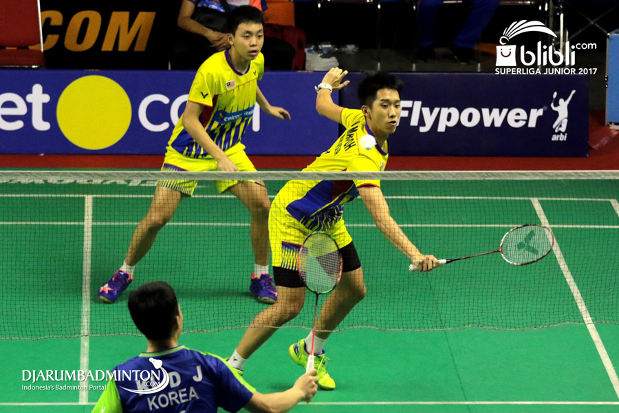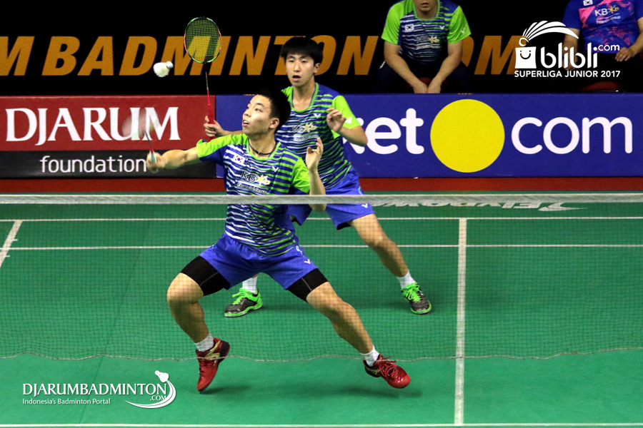 Ki Dong Ju/Yang Ji Woong (Korea) Mengembalikan Shuttlecock