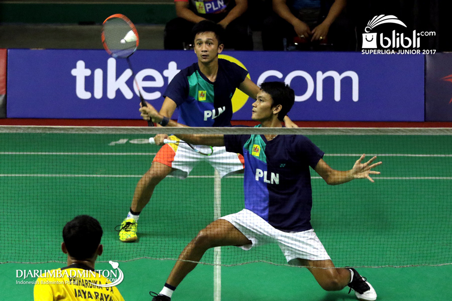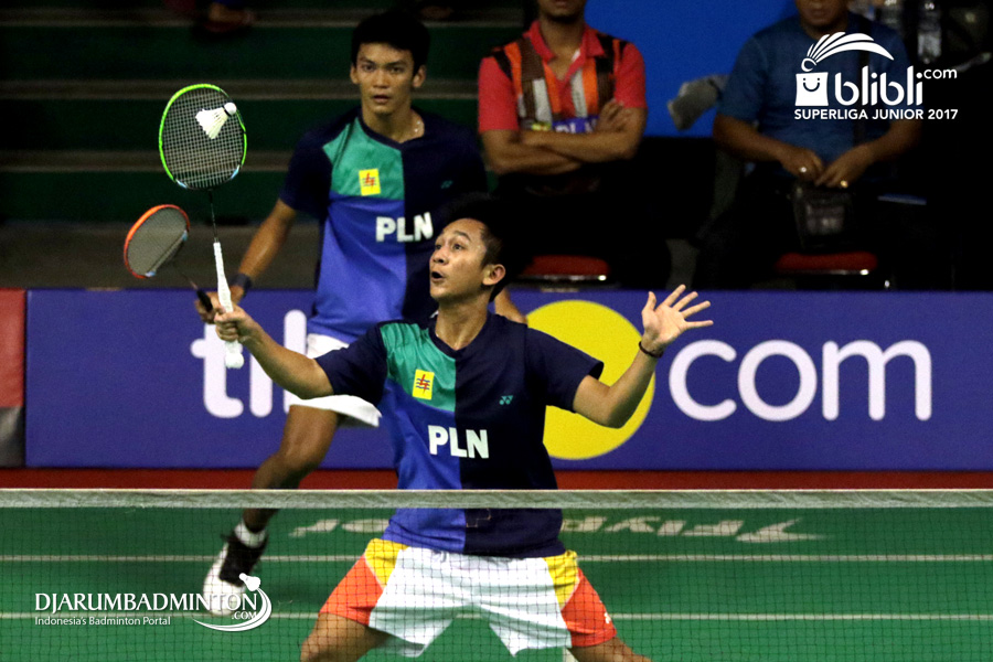 Habib Alfariz/Muhammad Sohibul F (SGS PLN) Menghadang Serangan