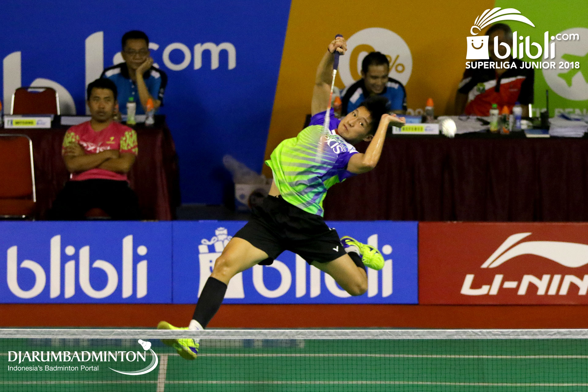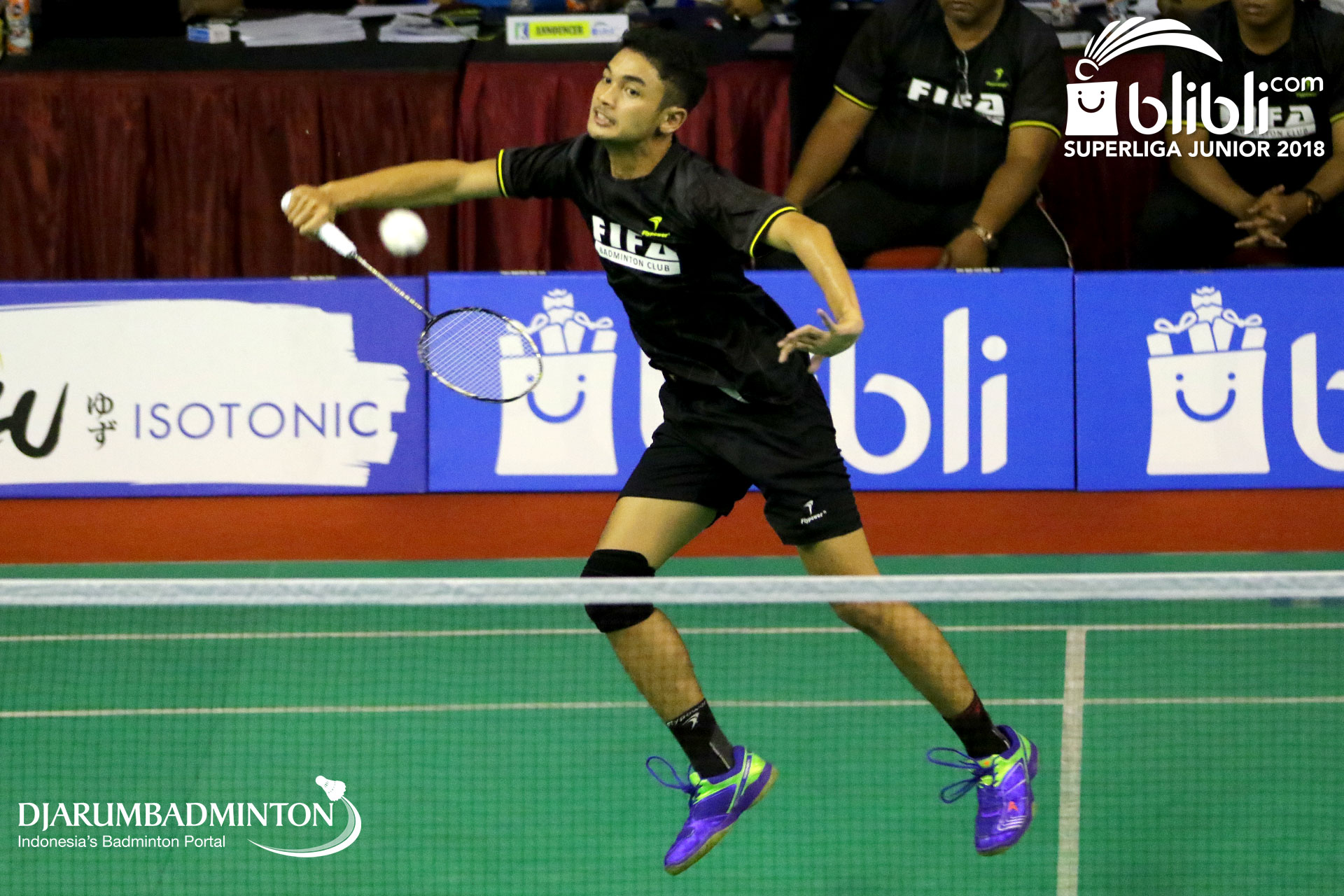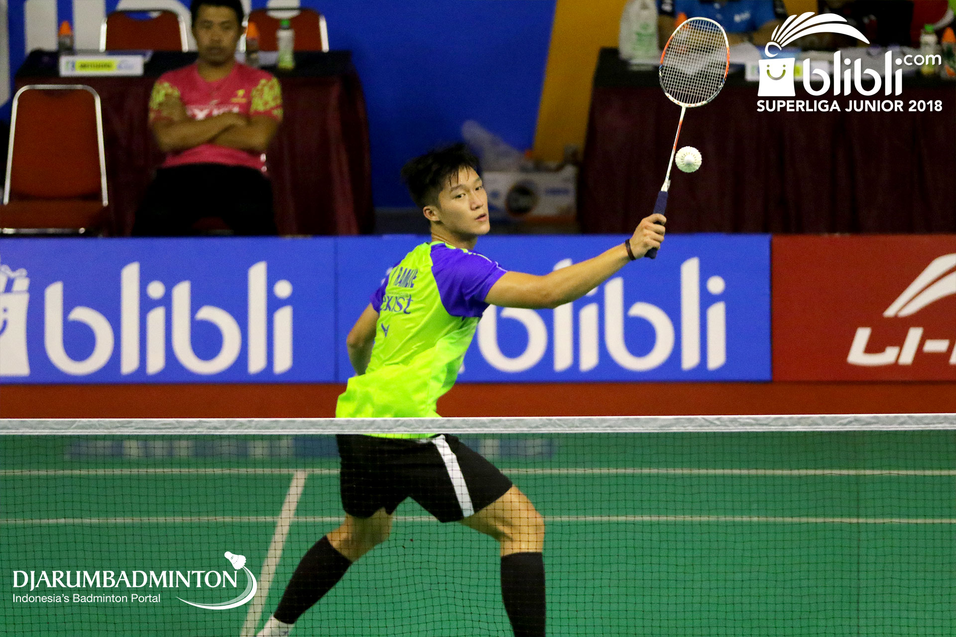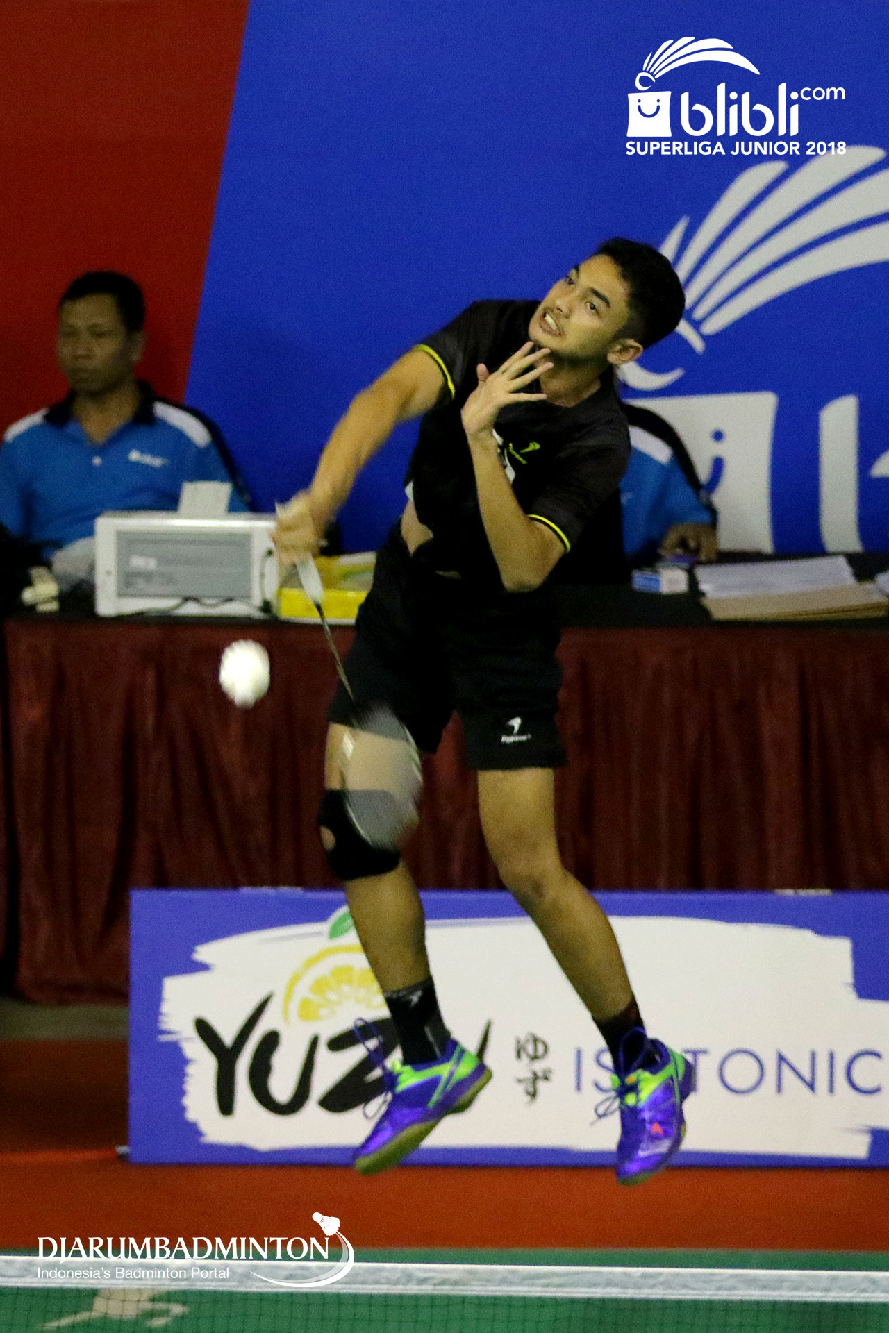 Yonathan Ramlie (PB. EXIST) mengembalikan shuttlecock