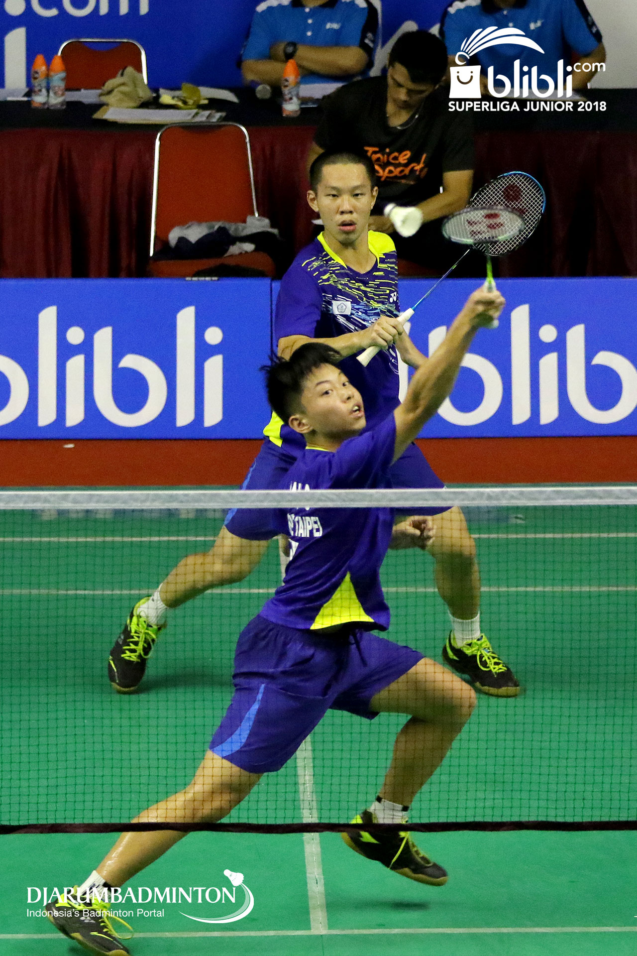 Jian,You-Cheng/Su,Chun-Chi (KEELUNG HIGH SCHOOL-CHINESE TAIPEI) melepaskan serangan
