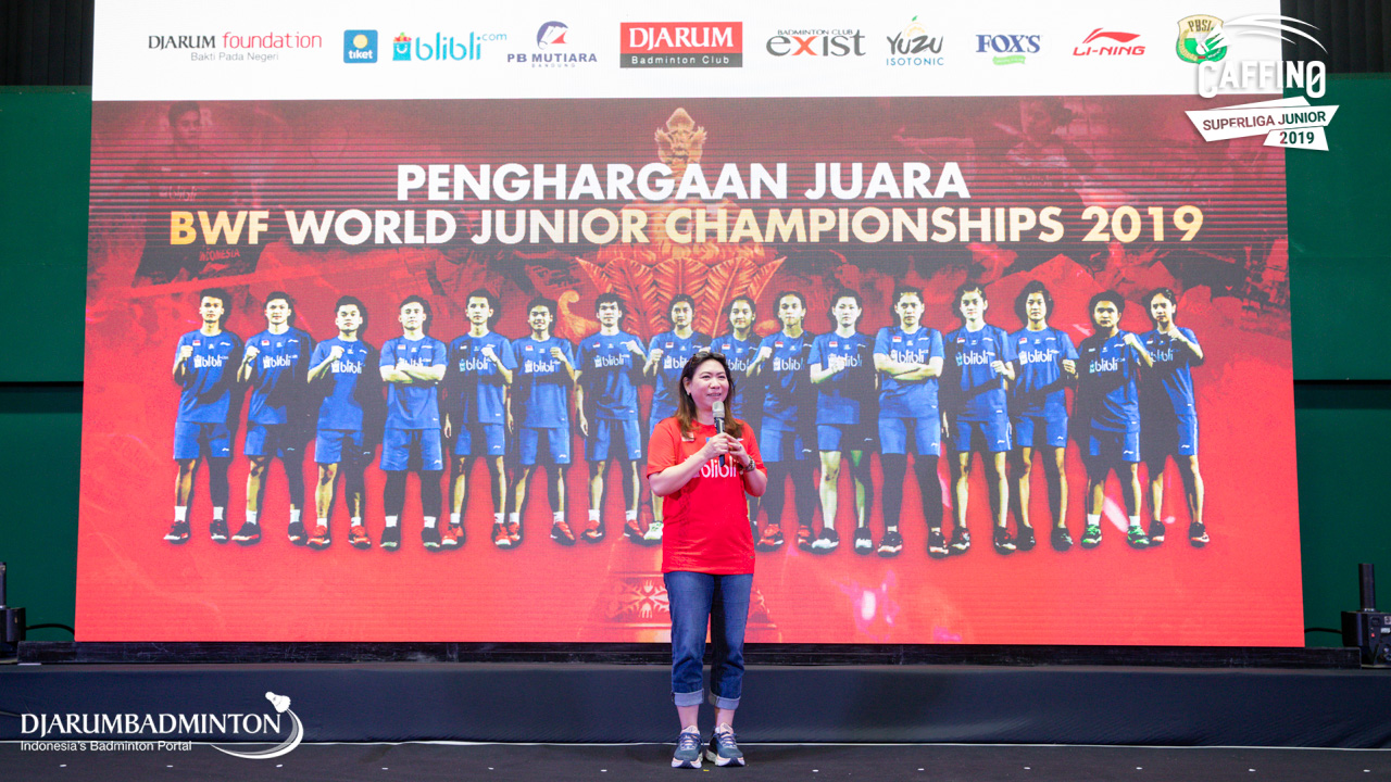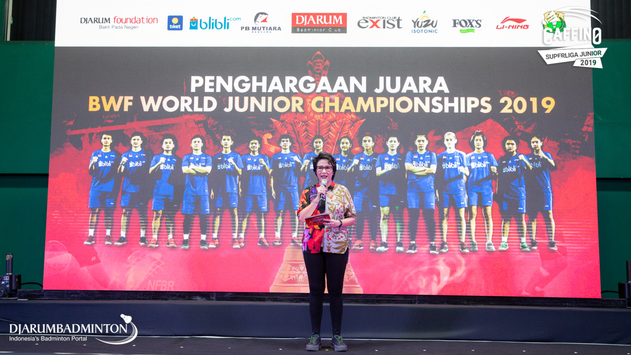 Yuni Kartika saat membuka acara Penghargaan Juara BWF World Junior Championships 2019