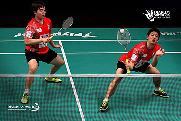 Kim Sa Rang/Lee Yong Dae (PB Musica Champion) bersiap menyambut pengembalian.