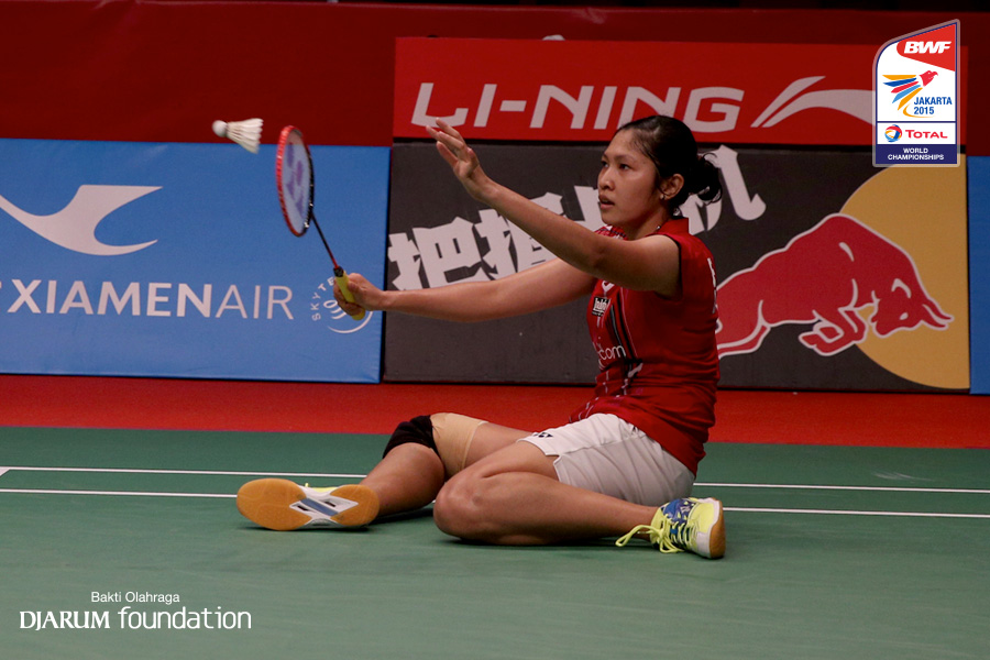 Lindaweni Fanetri (INA) menahan serangan lawan
