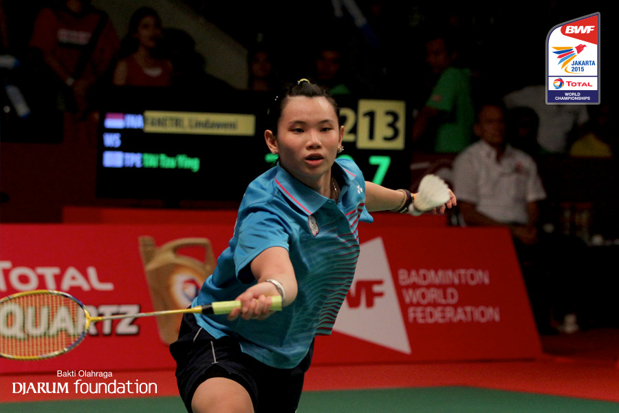 Tai Tzu Ying (TPE) mengembalikan shuttlecock ke arah lawan