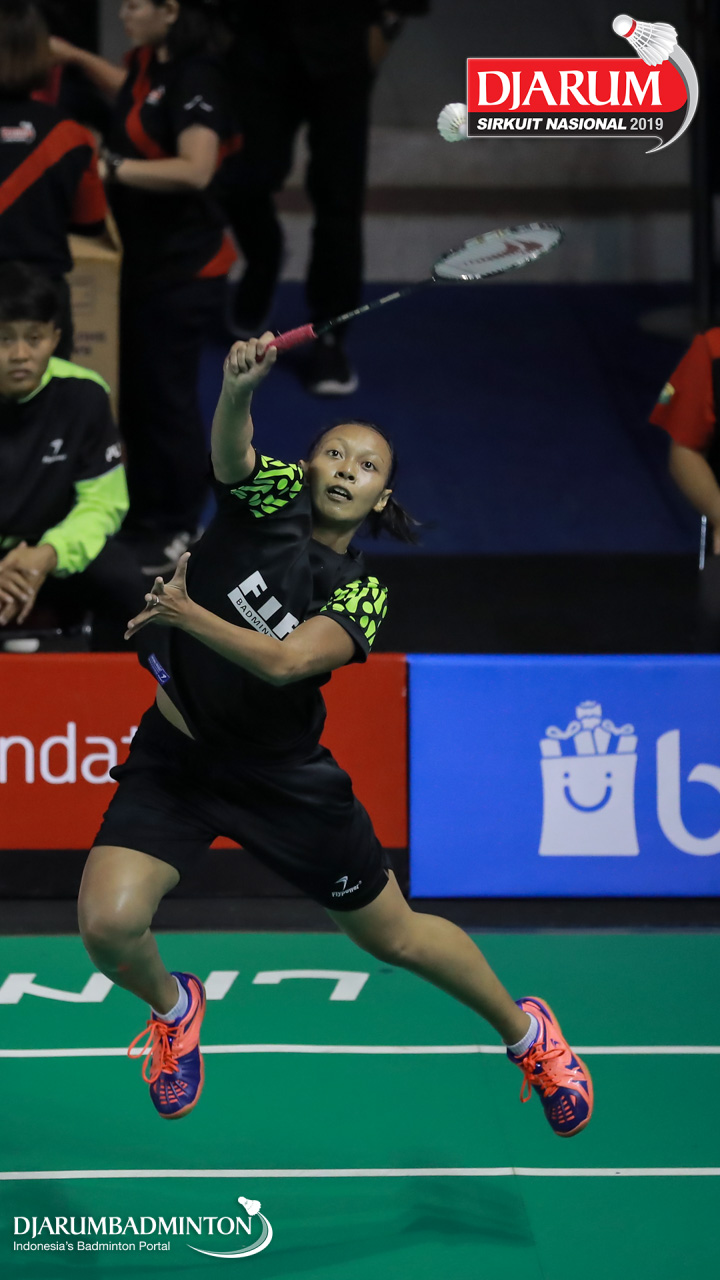 Sheila Dinda Kurniawan (Jaya Raya Jakarta) menggapai shuttlecock