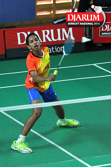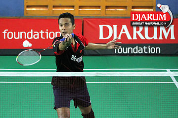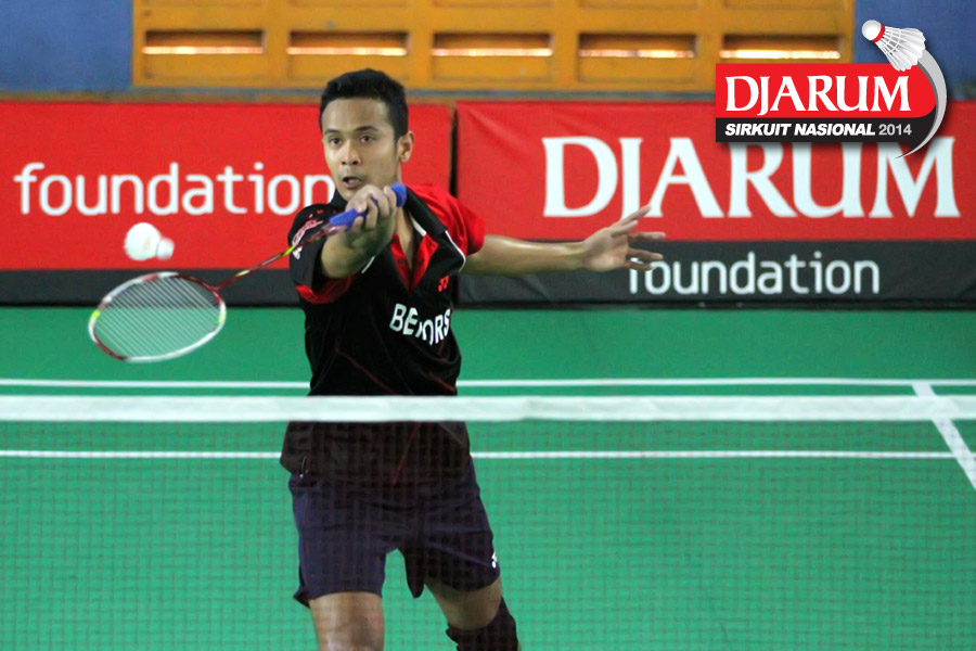 Chico Aura (Exist) bersiap menyambut pengembalian dari Erick Eriawan (PB Djarum).