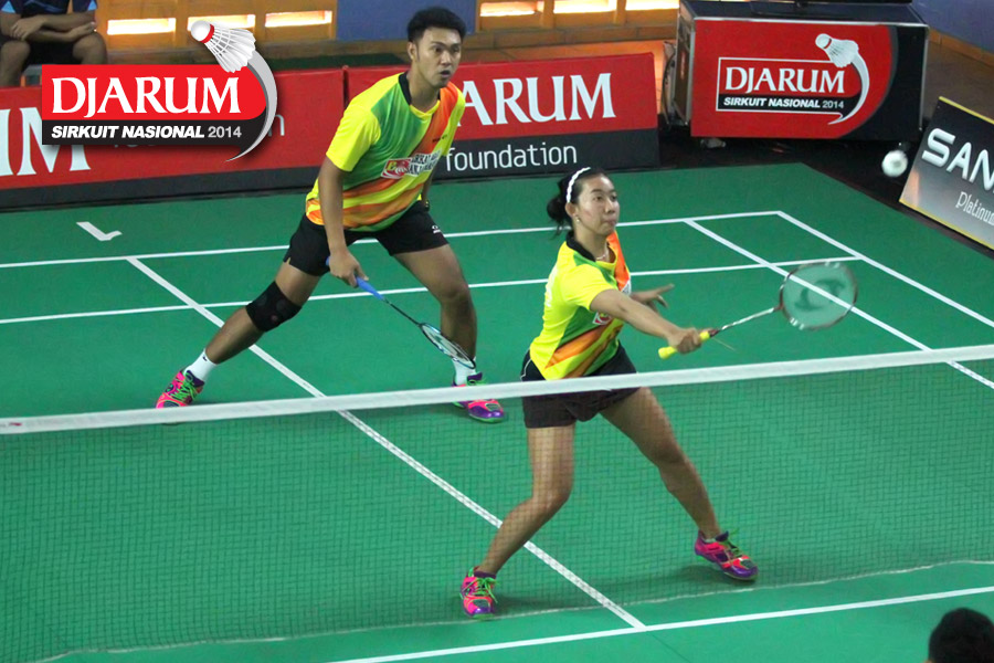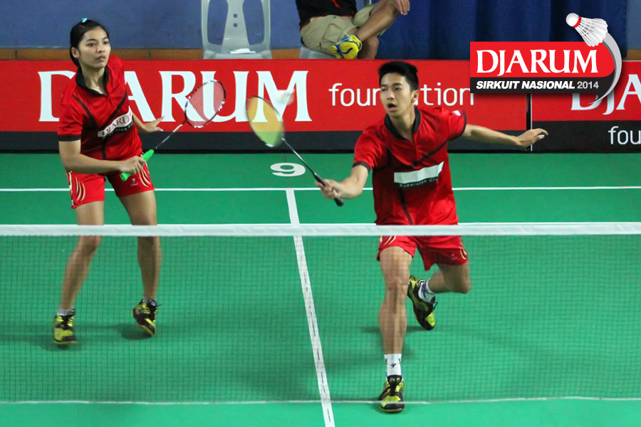 Ricky Alverino/Ristya Ayu (PB Djarum) mengembalikan shuttlecock ke arah Rizky Hidayat/Nadya Melati (Hi Qua Wima/Pertamina Indonesia).