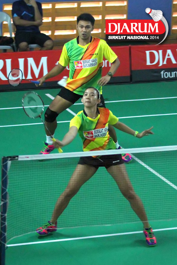 Ardiansyah Putra/Devi Tika Permatasari (Berkah Abadi) mengembalikan shuttlecock ke arah Kenas Adi/Nurbeta Kwanrico (PB Djarum).