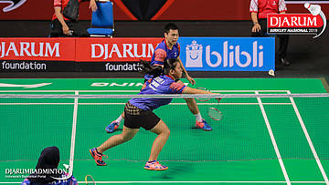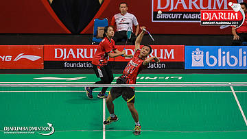 Yantoni Edy Saputra+Rosyita Eka Putri Sari (PB Djarum, Kudus) melepaskan serangan
