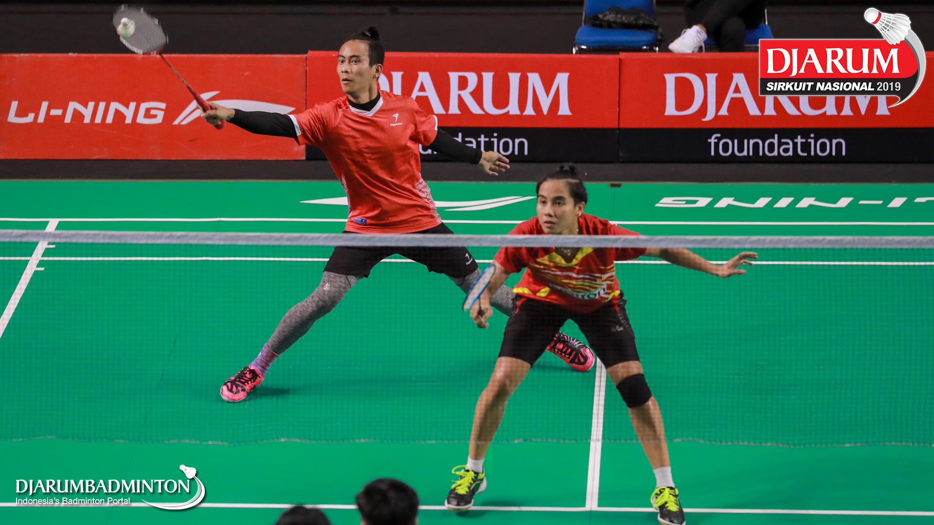 Agripina Primarahmanto Putera+Nadiya Melati (Berkat Abadi, Banjar+Pertamina Fastron, Jakut) mengembalikan shuttlecock