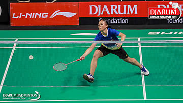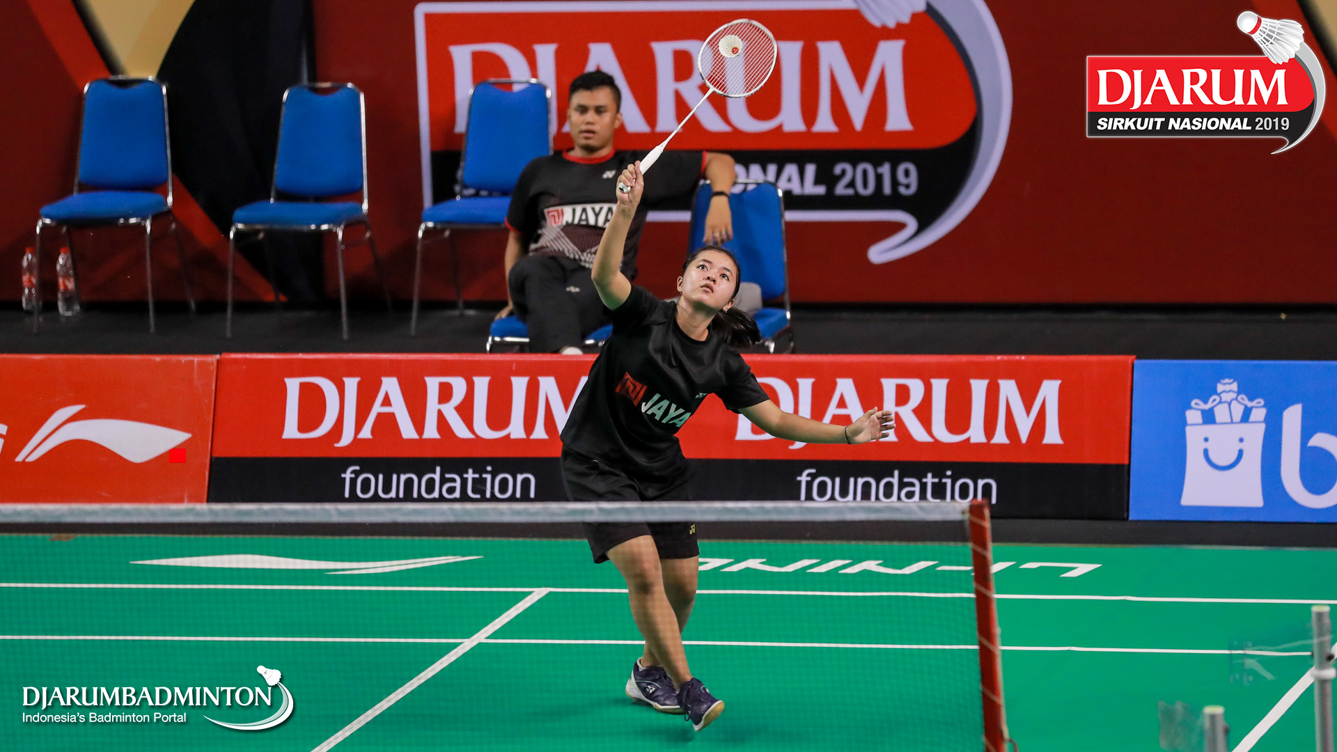 Hilda Nur Fadilah (Sangkuriang Graha Sarana PLN Bandung) bersiap menyambar shuttlecock