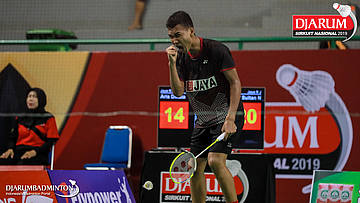 Ekspresi kekecewaan Aldy Firmanda (PB Djarum, Kudus)