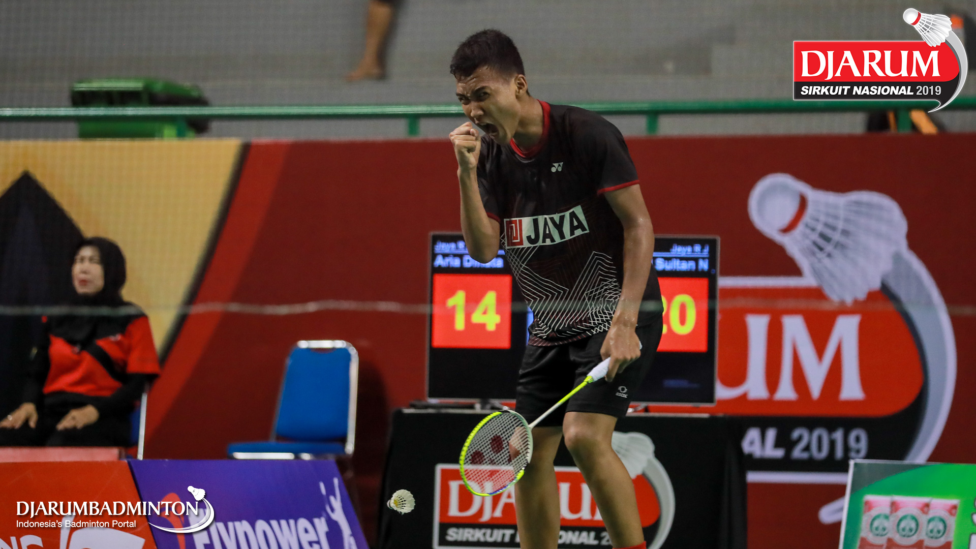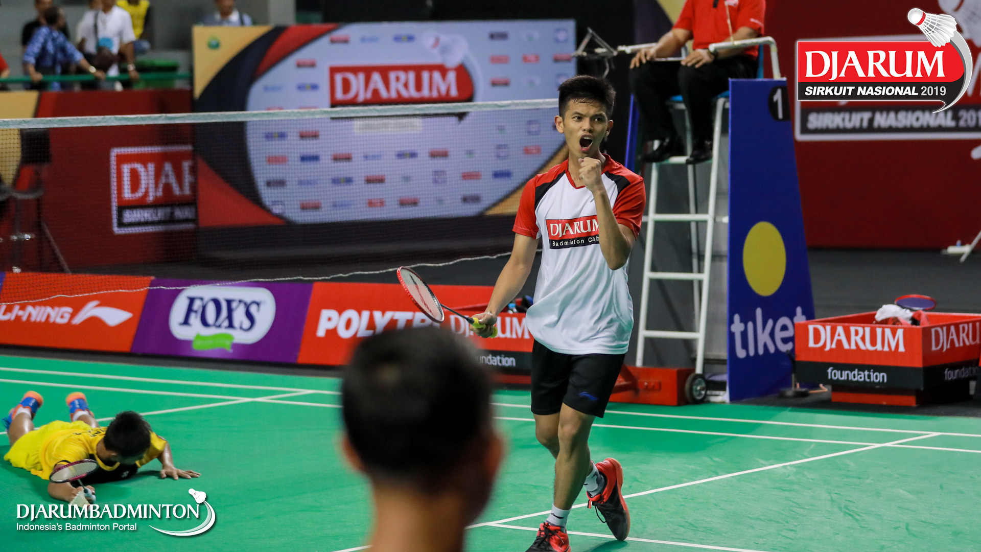 Selebrasi kemenangan Aldy Firmanda (PB Djarum, Kudus)