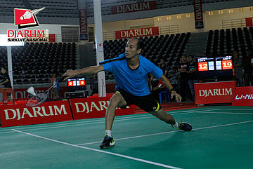 Rudi Cahyadi (PB Djarum) saat menunggu lawan tandingnya.